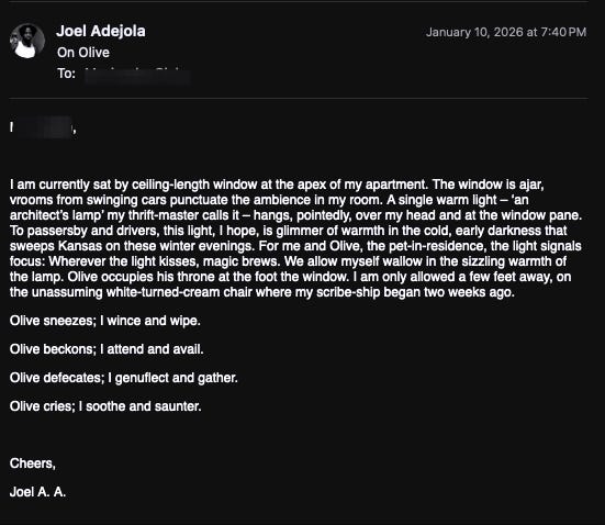 This framing of burnout as the erosion of continuty rather than a dramatic crash is spot on. The idea that Olive functions as a living notificaton when attention starts fragmenting is such a great observation. I've expereinced that same third-culture loneliness where none of the contexts fully see you, and it really does require something outside schedules and timezones to feel real agian.